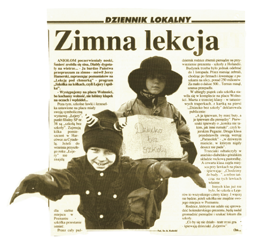 – Początkowo szukaliśmy różnych baraków, które można byłoby zaadaptować na szkołę. Chodziliśmy do urzędników, pytaliśmy o wolne lokale – opowiada Hamerski. Któregoś dnia, jedna z mam opowiedziała o budynku, który widziała w Lesznie. – Była to szkoła kontenerowa, którą rozebrano i w częściach przywieziono z Holandii. Pojechaliśmy zobaczyć, jak wygląda. Dziś muszę przyznać – to był okropny barak. Ale dla nas wtedy był jak pałac. Zamarzyliśmy o podobnym dla siebie – wspomina Hamerski.