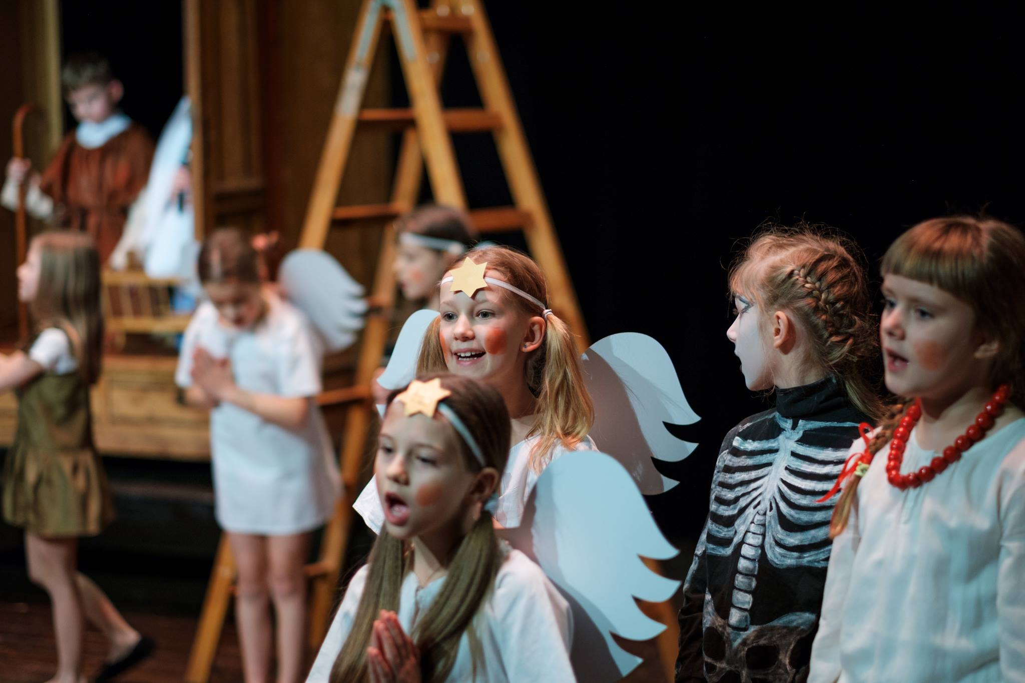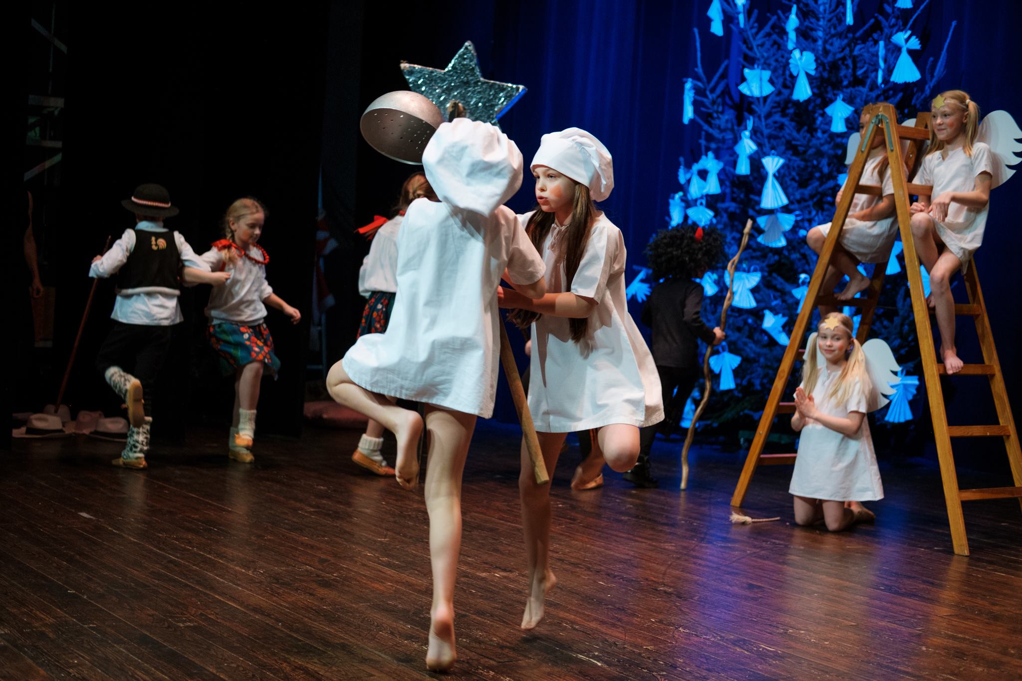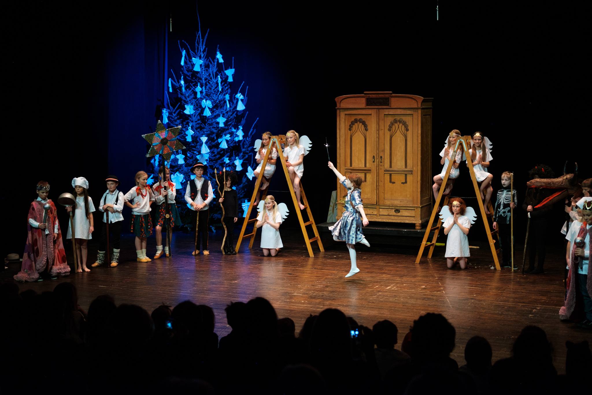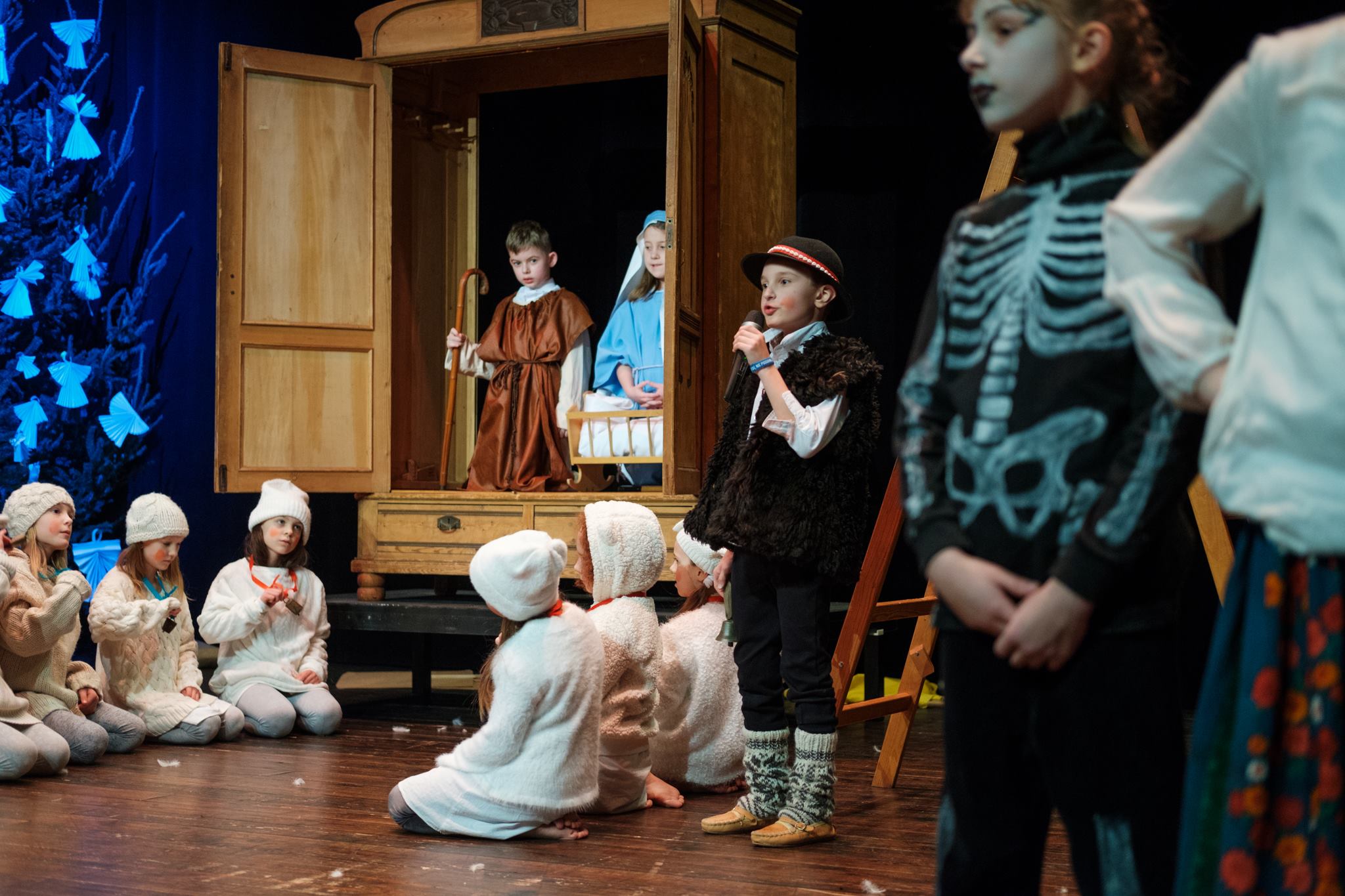 To niewyobrażalne, by w łejerskiej szkole nie było corocznych „Kolęd domowych” autorstwa Wandy Chotomskiej do muzyki Teresy Niewiarowskiej. Co roku Drugaki (a od czasu gdy nie ma zerówki – Trzeciaki) już we wrześniu, tradycyjnie przystępują do prób pięknych pastorałek, a młodsza klasa z zazdrością ich podgląda i marzy o kolejnym wrześniu. Tym razem scenografia jest bogatsza, ale nadal prosta w formie. Na tle rozgwieżdżonego nieba stoi stara, dwudrzwiowa szafa, wielka choina, i dwie drabiny.