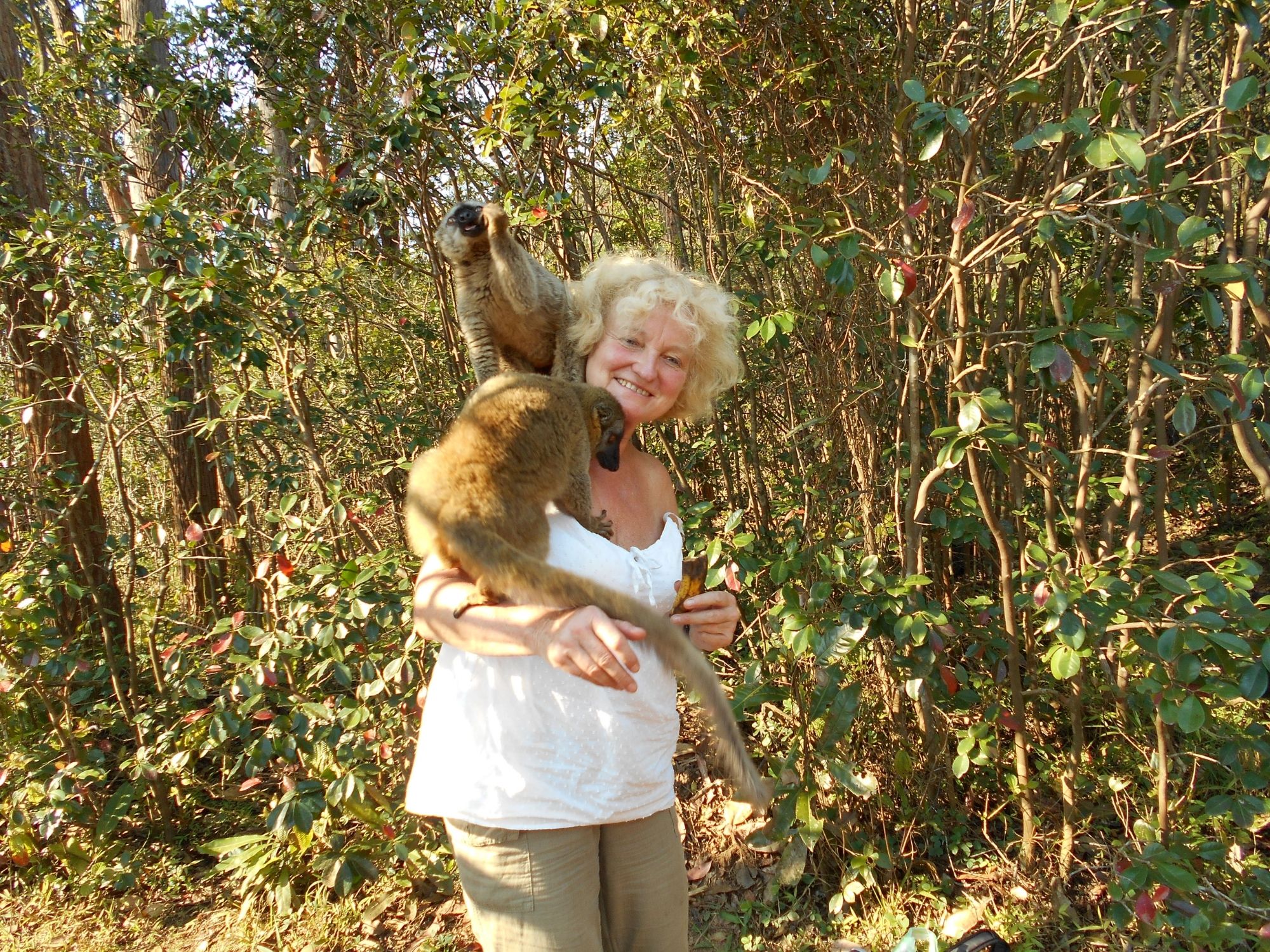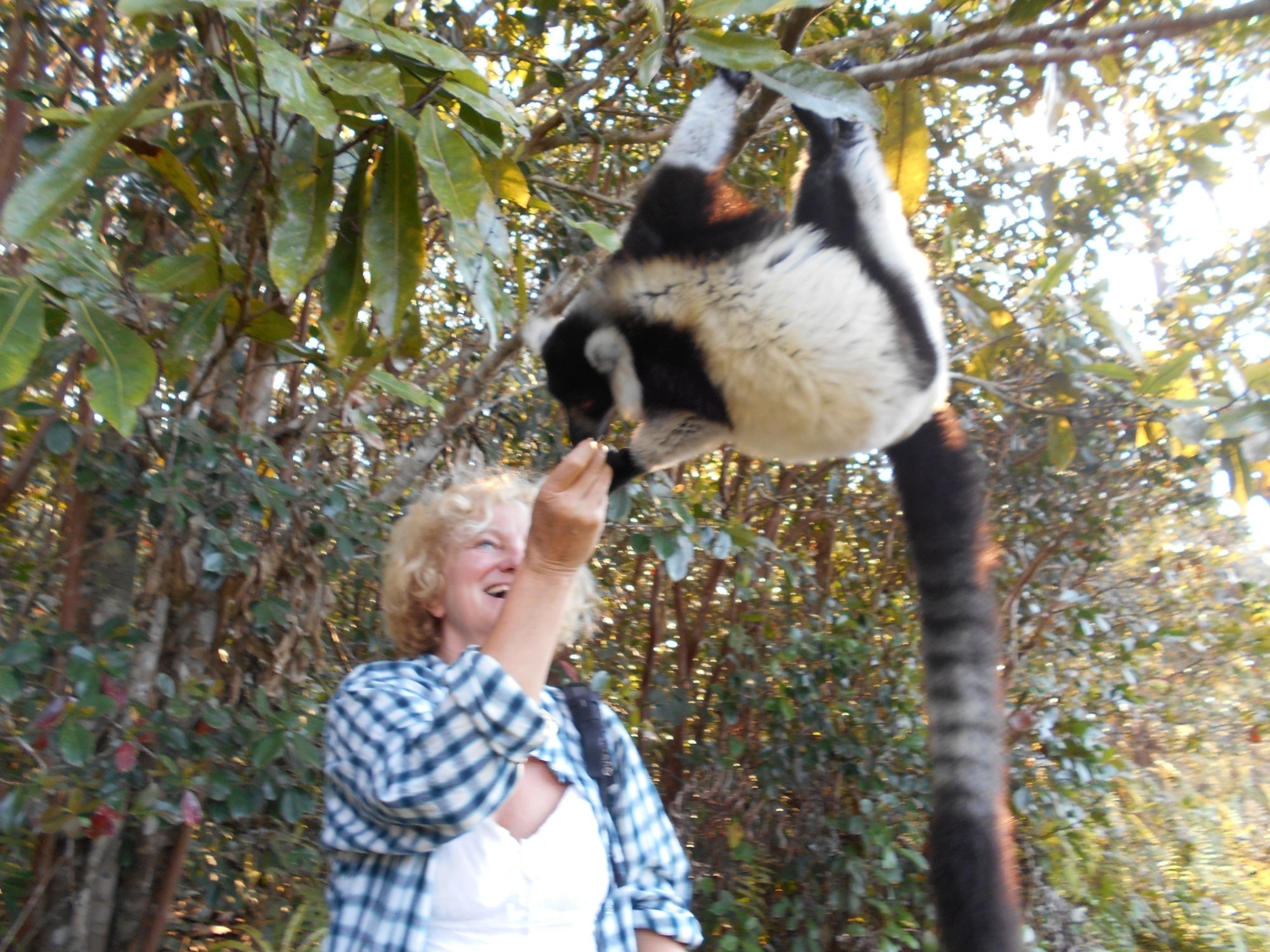 Po lunchu jedziemy na wyspę lemurów. Muszę zrobić zdjęcia dla naszych dzieciaków. Ceny za wstęp i przewodnika też europejskie. Przepływamy łodzią na wyspę i zaczyna się… Turyści z aparatami fotograficznymi polują na lemury, a lemury polują na turystów z bananami. Przewodnik wręcza nam banany i po chwili mamy już te urocze, ale też natarczywe stworzonka na sobie. Wskakują nam na ramiona, na głowy, wyciągają błagalnie łapki, albo wyrywają kawałki bananów.