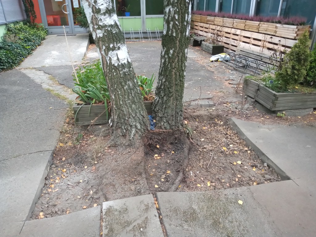 Sami przyznajcie: całość wygląda imponująco i… czeka już tylko na wypełnienie. A przy okazji – uwolniliśmy trochę nasze brzozy, których korzenie całe życie oglądały tylko beton!