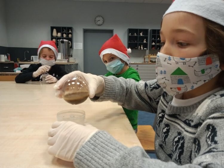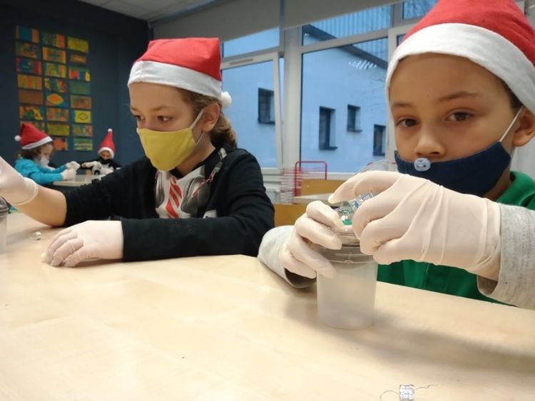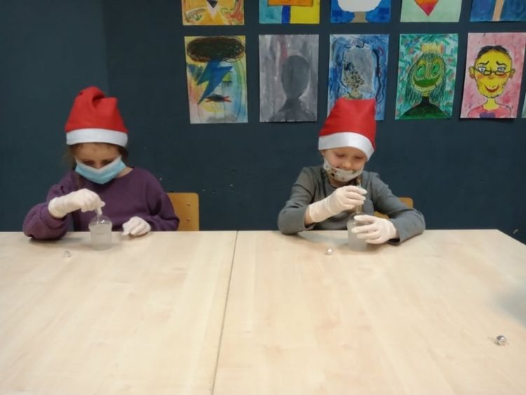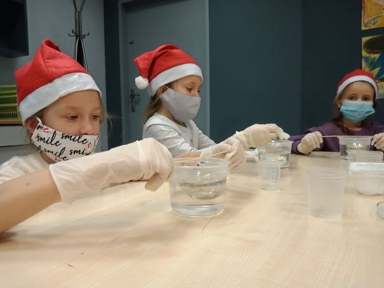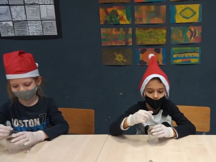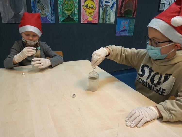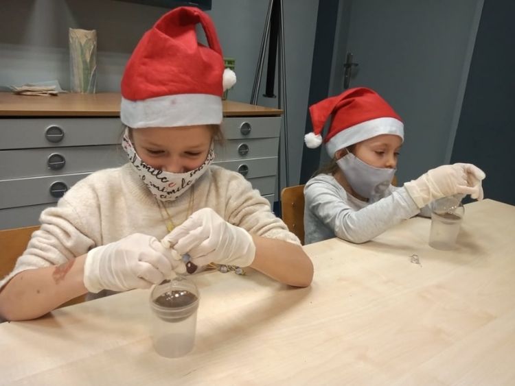 Łejerskie bombki powstały zgodnie z najstarszą recepturą zdobienia bombek – srebrzenia prawdziwym srebrem! Druh Jakub po tę wiedzę udał się specjalnie do Centrum Chemii w Małej Skali w Toruniu, aby przekazać ją naszym Pierwszakom!