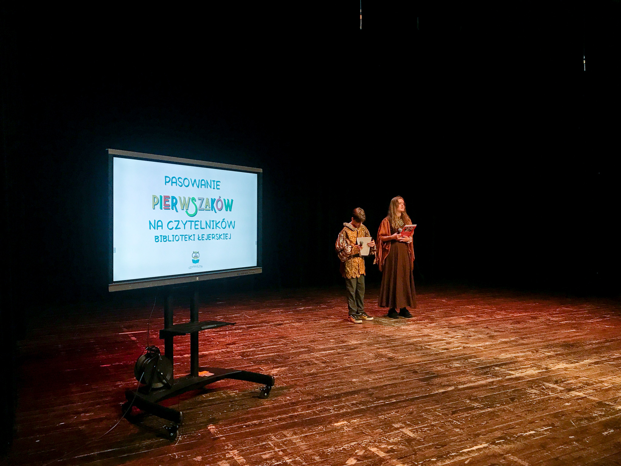 Święto Biblioteki to także niezmiernie ważny dzień dla naszych Pierwszaków, bowiem tradycyjnie tego właśnie dnia odbywa się uroczyste pasowanie uczniów klas pierwszych na Czytelników Biblioteki Łejerskiej. Dokonuje go naturalnie druhna Lucynka!