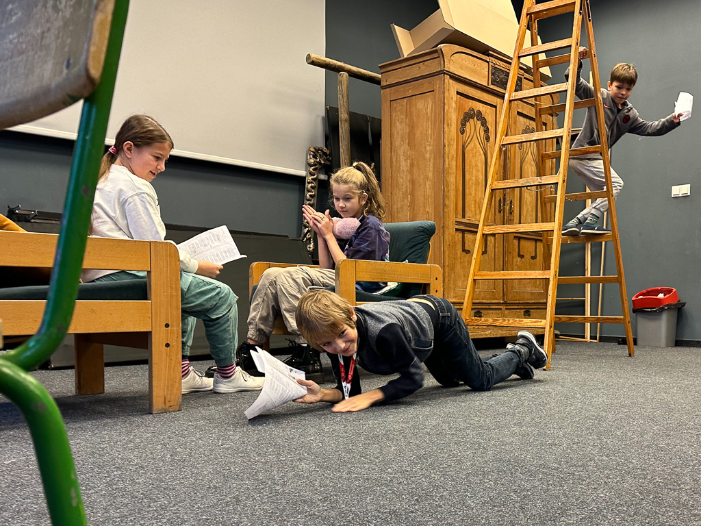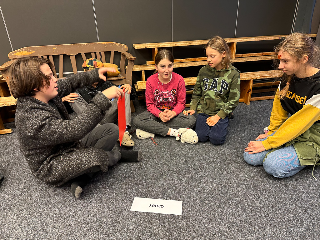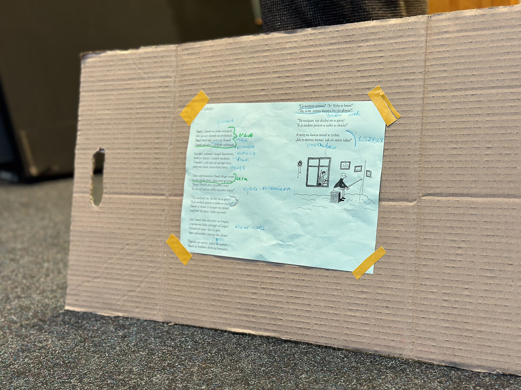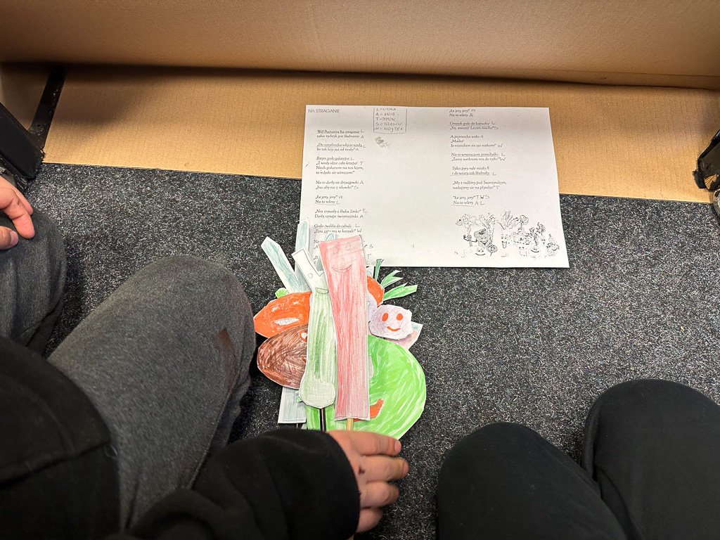 W kolejnym tygodniu, podczas realizacji zadań, zgłębialiśmy tajniki gwary poznańskiej, inscenizując zabawne przekłady znanych wszystkim dzieciom wierszyków z polskiego na godanie po naszymu Wuja Czecha (Marka Szymańskiego). Najlepiej wypadły inscenizacje Pawła i Gawła!