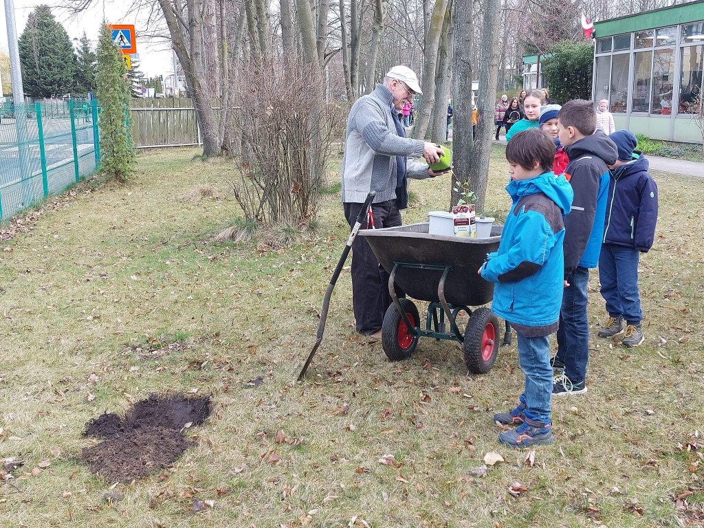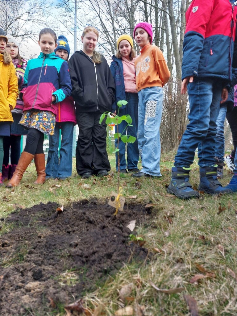 Na pamiątkę pobytu zasadziliśmy przywiezione przez Gości drzewko Ginkgo biloba, któremu nadaliśmy imię – Jakub 1 – na cześć koordynatora Łejersko-Weimarskiej wymiany – druha Jakuba, któremu bardzo dziękujemy za wszelką pomoc w organizacji całego pobytu Weimarczyków w naszej szkole!