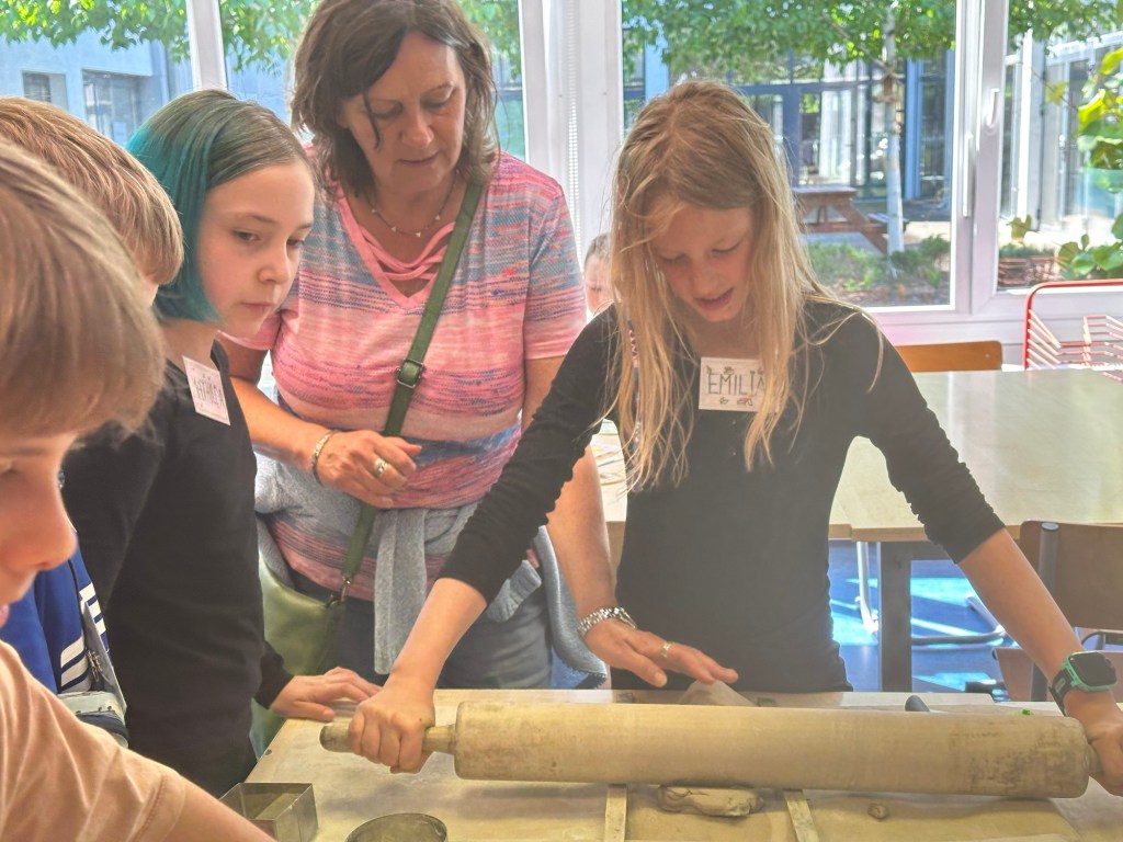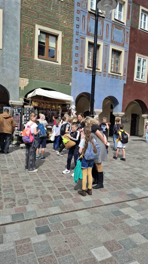 Po wspólnym śniadanku, przygotowanym przez niezawodnych rodziców Czwartaków, nadszedł czas na pokazanie Gościom naszego miasta. Spacerem przez Cytadelę udaliśmy się na Stary Rynek, a następnie na wspólne warsztaty w Rogalowym Muzeum Poznania. W południe udało nam się razem obejrzeć Poznańskie Koziołki, a na Cytadeli, w drodze powrotnej pokazaliśmy Przyjaciołom z Weimaru słynnych Nierozpoznanych Magdaleny Abakanowicz.