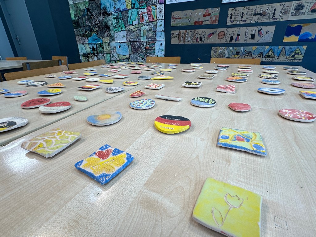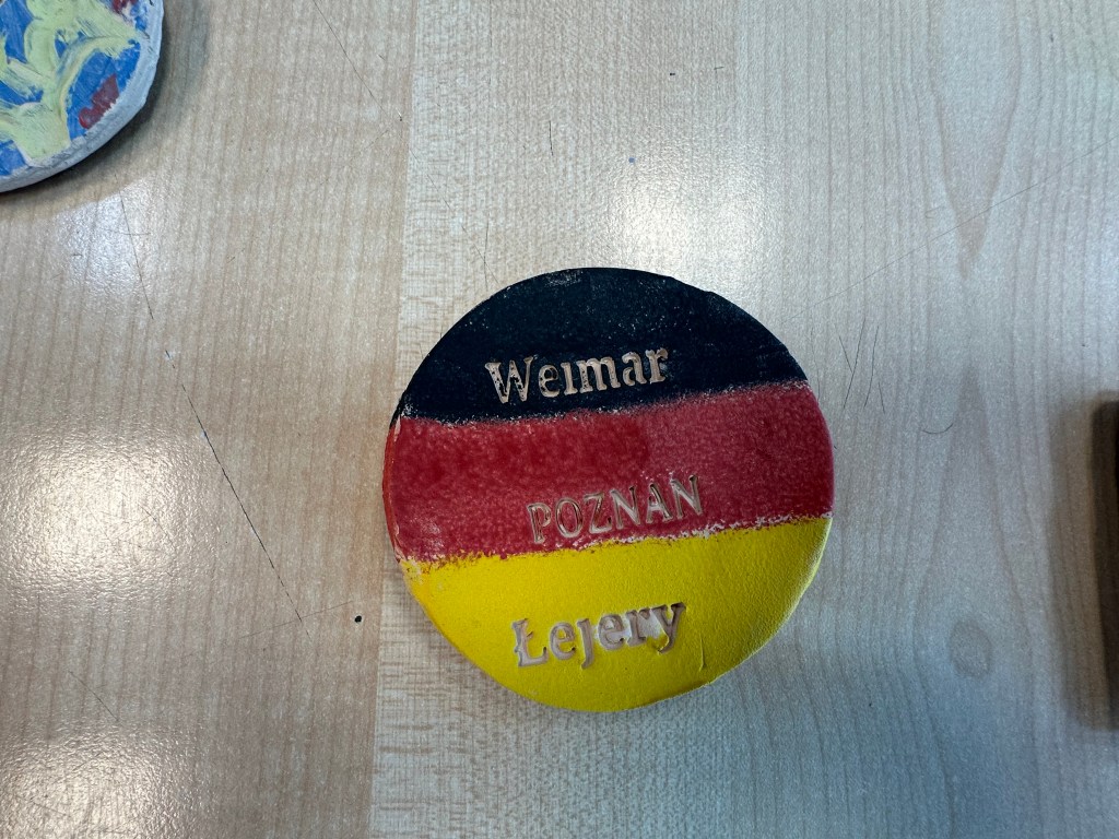 W poniedziałek 19 maja 2025 w końcu przyjechali do nas goście z Weimaru 🤩😍 Przywitaliśmy ich naszym literkowym transparentem, przygotowanym wraz z druhną Grażyną na zajęciach plastycznych.