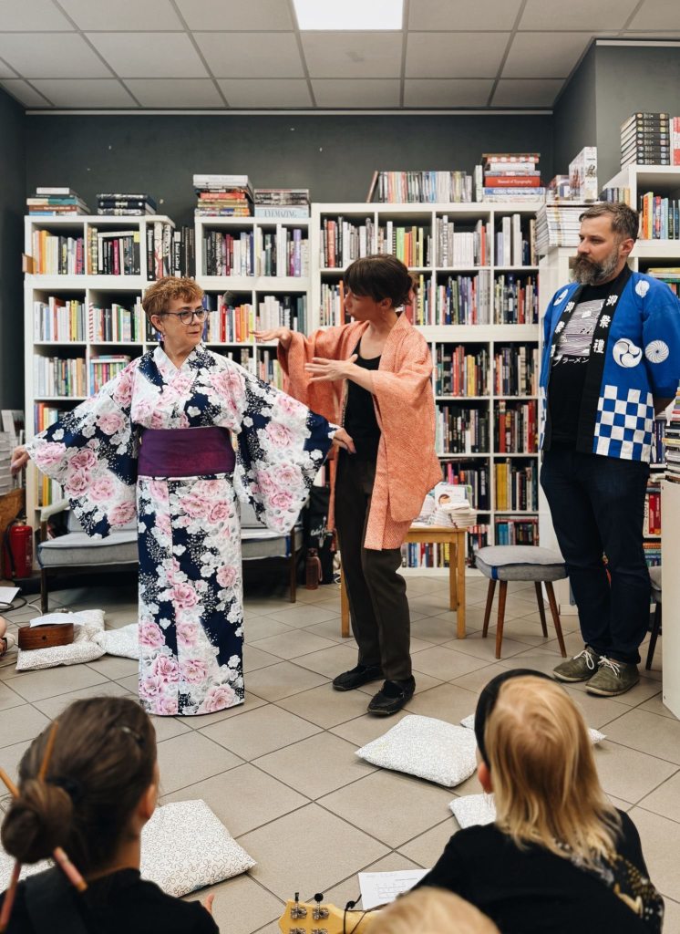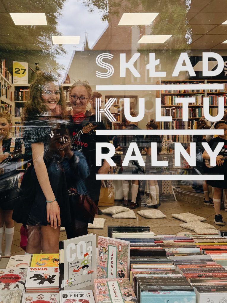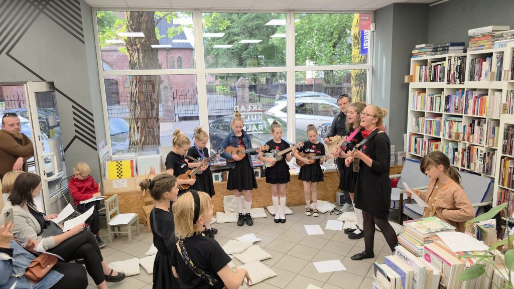 w księgarni Skład Kulturalny na poznańskich Jeżycach. Podczas spotkania słuchaliśmy japońskich baśni, śpiewaliśmy japońskie piosenki, rozmawialiśmy o japońskich filmach. Prowadząca od lat księgarnię i zaprzyjaźniona z Łejerami pani Jolanta Maćkowiak – Piasecka prezentowała przywiezione z Japonii kimono. Ukulelove Łejery tym razem śpiewały po japońsku piosenkę o przyjaźni i realizacji marzeń. Był również czas, aby złożyć muzyczne, ukulelowe życzenia wszystkim obecnym mamom. Ukulelove Łejery jak zwykle zachwyciły muzykalnością, wdziękiem i erudycją.